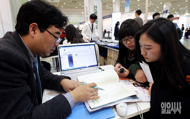 4일 서울 삼성동 코엑스에서 열린 2015학년도 정시 대학입학정보박람회를 찾은 학생과 학부모가 대입 상담을 받고 있다.