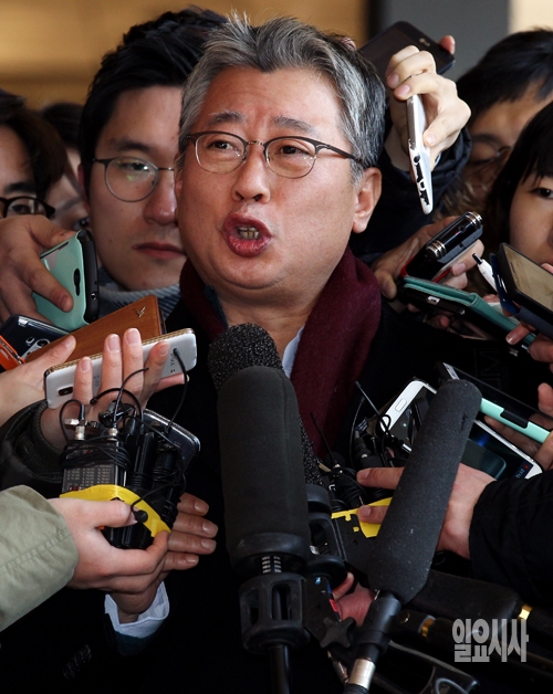 조응천 전 청와대 공직기강비서관이 5일 서울 서초동 서울중앙지검으로 청와대 내 문건 유출과 관련해 조사를 받기 위해 들어서며 취재진의 질문에 답하고 있다.