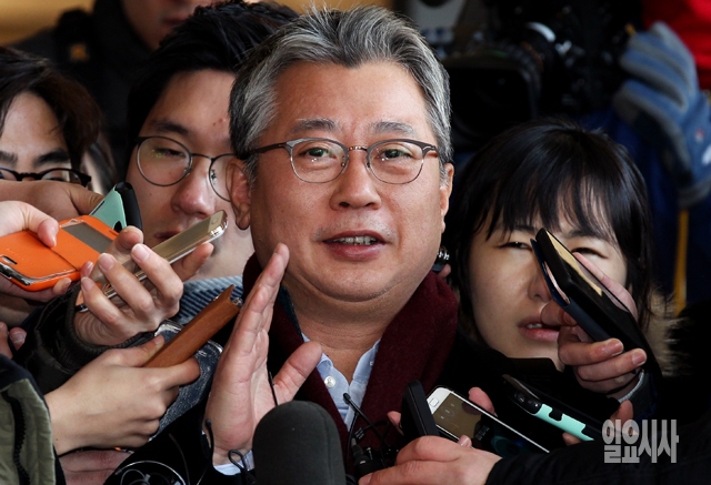 조응천 전 청와대 공직기강비서관이 5일 서울 서초동 서울중앙지검으로 청와대 내 문건 유출과 관련해 조사를 받기 위해 들어서며 취재진의 질문에 답하고 있다.