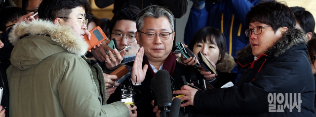 조응천 전 청와대 공직기강비서관이 5일 서울 서초동 서울중앙지검으로 청와대 내 문건 유출과 관련해 조사를 받기 위해 들어서고 있다.