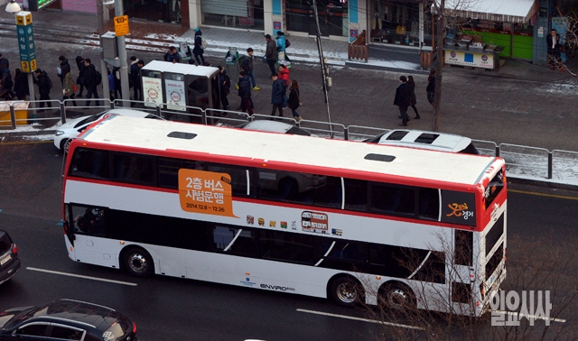 수원역~사당역 구간을 운행하는 7770번 광역 2층버스가 8일 서울 동작구 사당역 정류소로 들어서고 있다. 2층 버스는 이날 7770번 버스를 시작으로 김포~서울역, 남양주~잠실 노선 순으로 각각 일주일씩 시범운행한다.