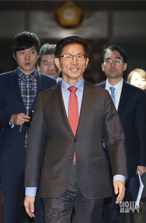 서울 여의도 국회 예결위 회의장에서 8일, 김문수 새누리당 보수혁신 특별위원회 위원장이 회으에 참석하기 위해 회의장 안으로 입장하고 있다.