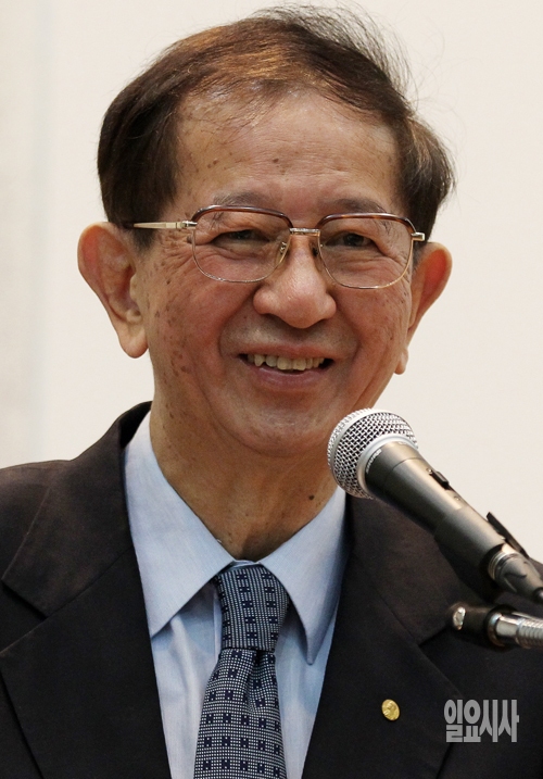 노벨화학상 수상자 리위안저 박사가 8일 서울 이화여자대학교 ECC 이삼봉홀에서 '이화여대 이공학의 미래, 노벨상 수상자에게서 듣다'라는 주제로 특강을 하며 미소 짓고 있다.
