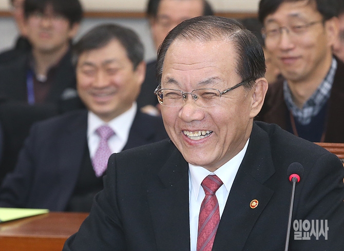 8일, 서울 여의도 국회 법제사법위원회 회의실에서 열린 25개 교육법안 처리를 위한 전체회의 도중 황우여 교육부장관이 활짝 웃고 있다.
