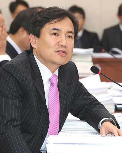 8일, 서울 여의도 국회 법제사법위원회 회의실에서 열린 25개 교육법안 처리를 위한 전체회의에서 김진태 새누리다아 의원이 황우여 교육부장관에게 질의하고 있다.