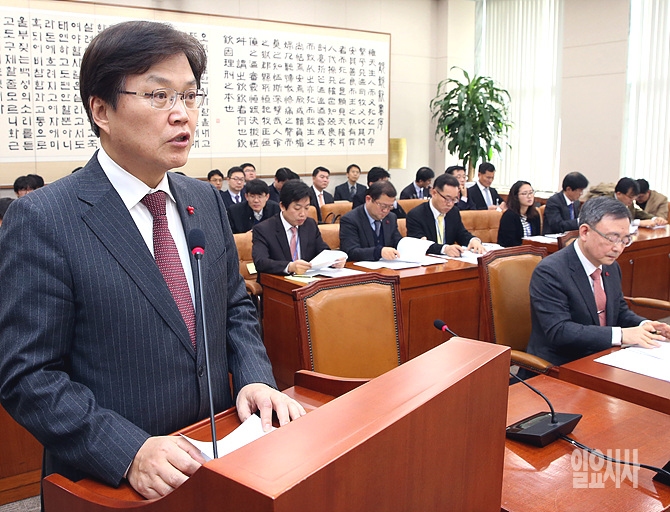 8일, 서울 여의도 국회 법사위원회 회의실에서 열린 전체회의에서 최양희 미래부장관이 업무보고를 하고 있다.