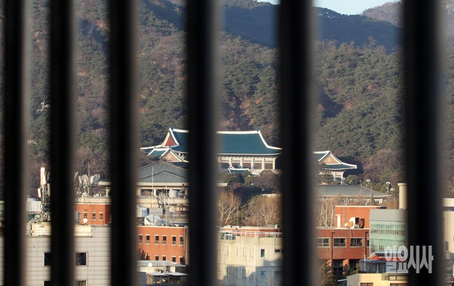 비선실세 의혹을 받고 있는 정윤회 씨의 검찰 조사가 이틀 앞으로 다가온 가운데 8일 서울 사직로의 한 건물에서 바라본 청와대에 적막감이 감돌고 있다.