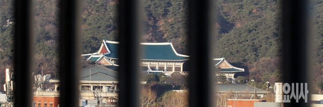 비선실세 의혹을 받고 있는 정윤회 씨의 검찰 조사가 이틀 앞으로 다가온 가운데 8일 서울 사직로의 한 건물에서 바라본 청와대에 적막감이 감돌고 있다.