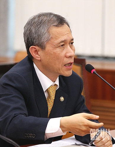 8일, 서울 여의도 국회에서 열린 법제사법위원회 전체회의에서 김상규 조달청장이 의원들의 질의에 답변하고 있다.