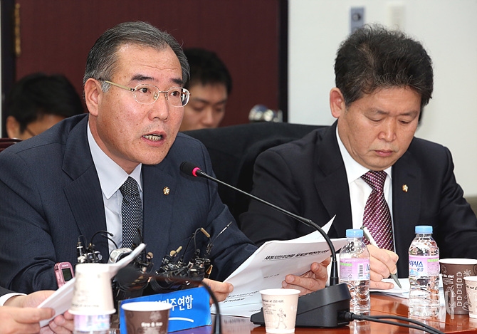 9일, 서울 여의도 국회에서 열린 새정치민주연합 원내대책회의서 이개호 의원이 발언하고 있다.