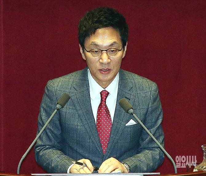 9일, 서울 여의도 국회 본회의장에서 본회의가 열린 가운데, 새누리당 정두언 의원이 복귀를 알리는 신상발언을 하고 있다.