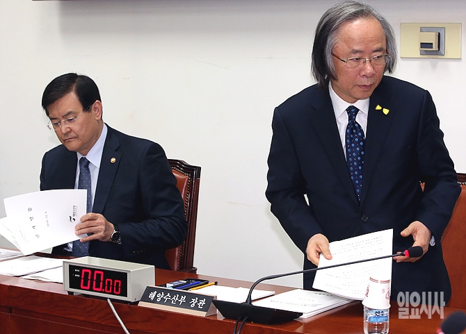 9일, 서울 여의도 국회에서 열린 국민안전특별혁신위원회 전체회의에 이주영 해양수산부장관(사진 오른쪽)과 서승환 국토교통부장관이 출석하고 있다.