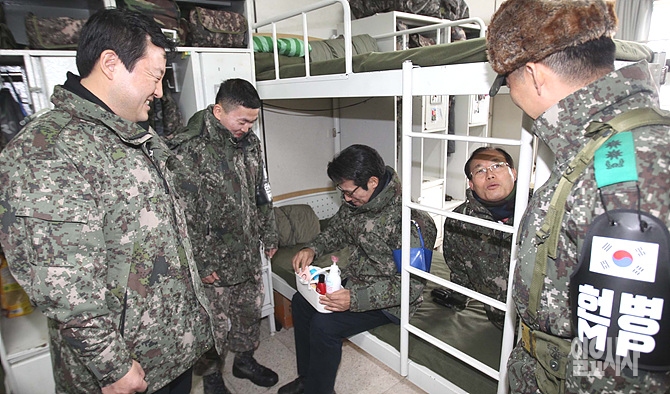 10일, 국회 군 인권개선 및 병영문화혁신 특별위원회 위원장을 맡고 있는 새누리당 정병국 등 의원들이 강원도 철원 3사단 전방대대에서 병영 실태파악을 위해 군부대 생활관을 방문해 장병과 이야기를 나누고 있다. (사진공동취재단)