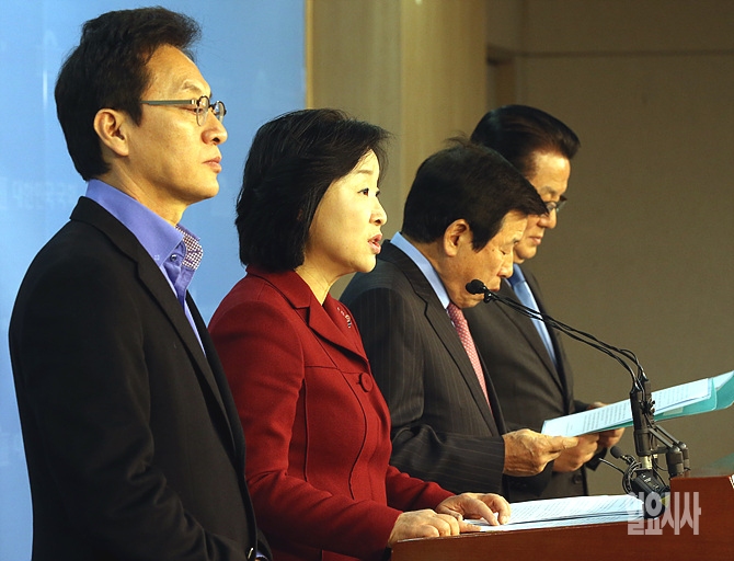 10일, 서울 여의도 국회 정론관에서 새누리당 정두언, 새정치민주연합 박지원·유인태, 정의당 심상정 원내대표 등이 사형제 폐지를 주장 기자회견을 갖고 있는 가운데, 심 원내대표가 발언하고 있다.