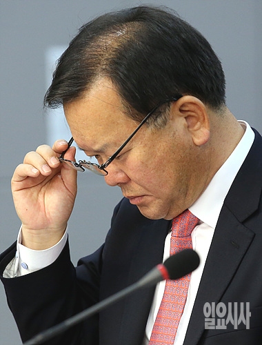 11일, 서울 여의도 국회 의원회관에서 평자포럼 2014년 연말 대토론회 '한국 사회 대전환, 어떻게 새로운 정치주체를 형성할 것인가'가 열린 가운데, 김부겸 새정치민주연합 전 의원이 자료를 확인하기 위해 안경을 들어올리고 있다.