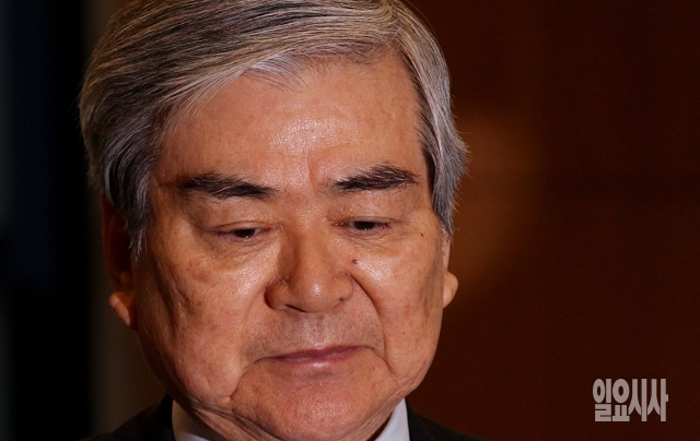 조양호 한진그룹 회장이 12일 서울 강서구 대한항공 본사에서 긴급 기자회견을 갖고 장녀인 조현아 전 대한항공 부사장의 땅콩리턴 사건과 관련해 대국민 사과를 하고 있다.