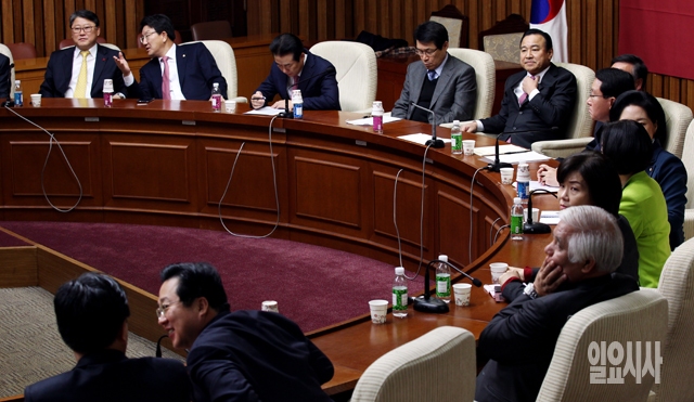 새누리당 이완구 원내대표를 비롯한 의원들이 16일 서울 여의도 국회에서 원내대책회의를 갖고 있다.