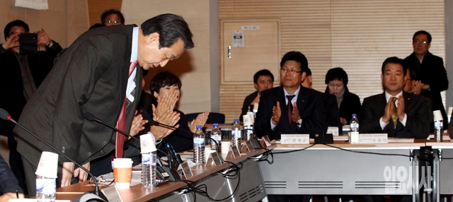 새누리당 김무성 대표가 16일 서울 여의도 중소기업중앙회관에서 열린 중소기업·소상공인특별위원회 1차회의에서 참석자들에게 인사하고 있다.