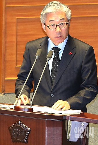 16일, 서울 여의도 국회 본회의장에서 열린 긴급현안질의에서 김종덕 문화체육관광부장관이 의원들의 질의에 답변하고 있다.