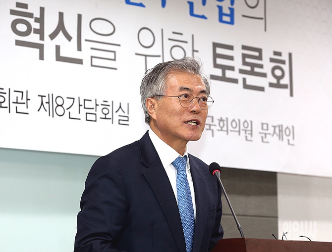 17일, 서울 여의도 국회 의원회관에서 열린 '이기는 혁신-새정치민주연합의 혁신' 토론회에서 문재인 의원이 인사말을 하고 있다.