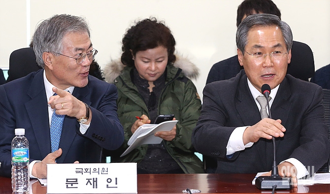 17일, 서울 여의도 국회 의원회관에서 열린 '이기는 혁신-새정치민주연합의 혁신' 토론회에서 우윤근 새정치민주연합 원내대표가 마이크를 잡고 있다.