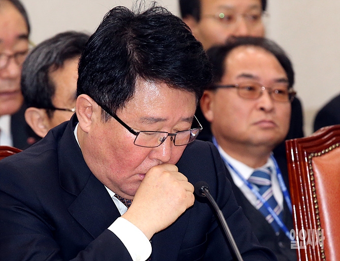 30일, 서울 여의도 국회에서 열린 산업통상자원부 전체회의에 조석 한국수자력원자력 사장이 출석해 최근 '원전 보안'과 관련해 의원들의 질의에 잠시 헛기침을 하고 있다.
