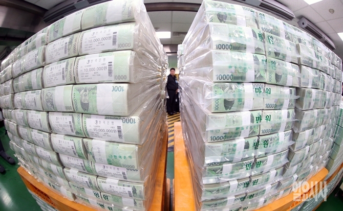 설을 일주일 앞둔 12일 오전 서울 중구 한국은행 본점에 각 금융기관으로 보낼 설 자금이 쌓여있다.