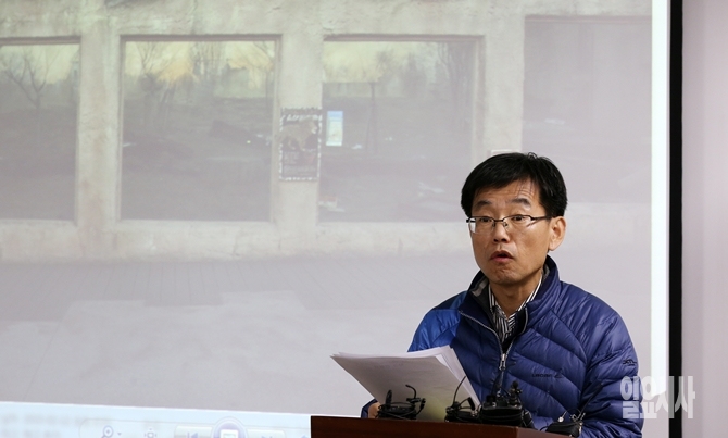 사육사 김 모 씨가 사자에 물려 숨진 사건이 발생한 12일 오후 안찬 어린이대공원장이 서울 광진구 어린이대공원 회의실에서 사고 관련 브리핑을 하고 있다.