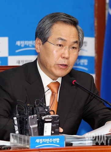 새정치민주연합 우윤근 원내대표가 16일 오전 서울 여의도 국회에서 열린 당 최고위원회의에 참석해 발언하고 있다.