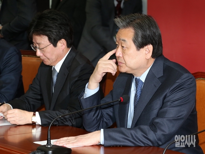 김무성 새누리당 대표가 16일 오전 서울 여의도 국회에서 열린 최고위원회의에 참석해 눈을 긁적이고 있다.