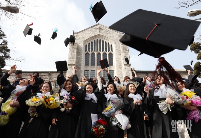 23일 오후 서울 서대문구 이화여대에서 열린 2014학년도 학위수여식에서 졸업생들이 학사모를 던지며 졸업의 기쁨을 만끽하고 있다.