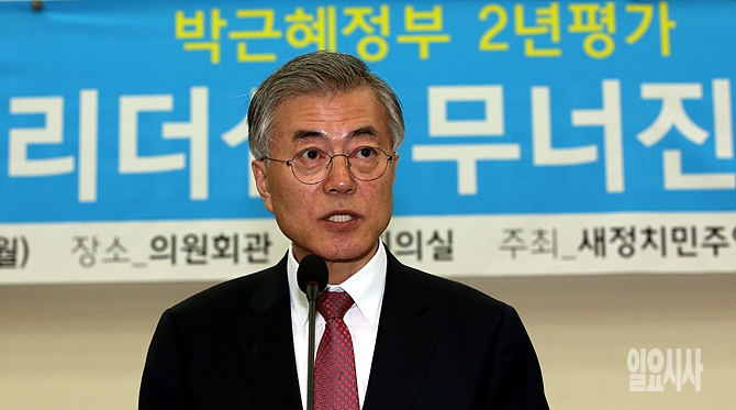 23일, 서울 여의도 국회 의원회관 소회의실에서 열린 '박근혜정부 2년 평가, 불통의 리더십, 무너진 민생경제' 토론회 직전, 문재인 새정치민주연합 대표가 발언하고 있다.
