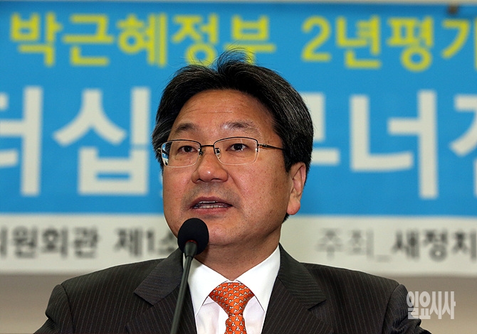 23일, 서울 여의도 국회 의원회관 소회의실에서 열린 '박근혜정부 2년 평가, 불통의 리더십, 무너진 민생경제' 토론회가 열린 가운데, 새정치민주연합 강기정 정책위의장이 인사말을 하고 있다.