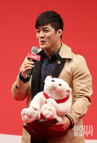24일 오전 서울 소공동 웨스틴조선호텔에서 열린 ‘제20회 코카콜라 체육대상’ 시상식에서 우수선수상을 수상한 레슬링의 김현우가 수상소감을 전하고 있다.