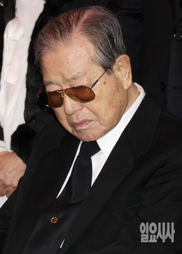 25일 오전 서울 송파구 서울아산병원 장례식장에서 거행된 김종필 전 총리의 부인 故 박영옥 여사 발인식에서 김 전 총리가 고인을 배웅하고 있다. 척추협착증과 요도암 투병 끝에 지난 21일 86세로 세상을 떠난 고인은 충남 부여에 위치한 가족 묘소에 안장된다.