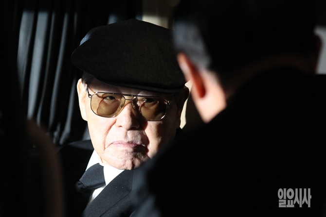 25일 오전 서울 송파구 서울아산병원 장례식장에서 거행된 김종필 전 총리의 부인 故 박영옥 여사 발인식에서 김 전 총리가 발인식을 마친 뒤 관계자와 대화하고 있다. 척추협착증과 요도암 투병 끝에 지난 21일 86세로 세상을 떠난 고인은 충남 부여에 위치한 가족 묘소에 안장된다.