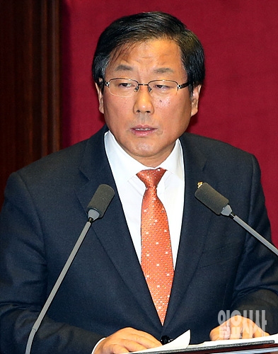 25일, 서울 여의도 국회 본회의장에 열린 첫날 대정부질문에서 새정치민주연합 윤후덕 의원이 국무위원들을 대상으로 질의하고 있다.