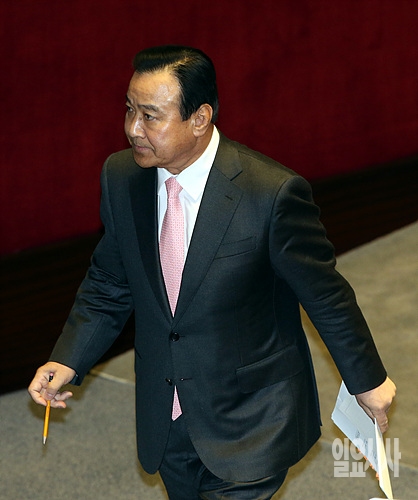 25일, 서울 여의도 국회 본회의장에 열린 첫날 대정부질문에서 이완구 국무총리가 질의를 받기 위해 단상으로 향하고 있다.