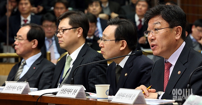 25일, 서울 여의도 국회에서 열린 '정부 및 공공기관 등 해외자원개발 진상규명국정조사특별위원회' 전체회의에서 윤상직 산업자원부장관이 의원들의 질의에 답변하고 있다.