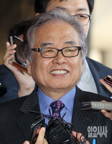 '중앙대 특혜' 외압 의혹을 받고 있는 박범훈 전 청와대 교육문화수석이 30일 오전 서초동 서울중앙지검에 피의자 신분으로 출석해 취재진의 질문을 받고 있다.