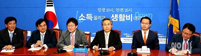 4일, 서울 여의도 국회에서 유승민·우윤근 여야 원내대표, 조해진·안규백 여야 원내수석부대표 등 지도부가 '2+2 여야 주례회동'을 갖고 있다.