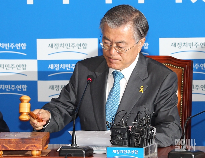 새정치민주연합 문재인 대표가 4일 오전 서울 여의도 국회에서 열린 최고위원회의에서 의사봉을 두드리고 있다.