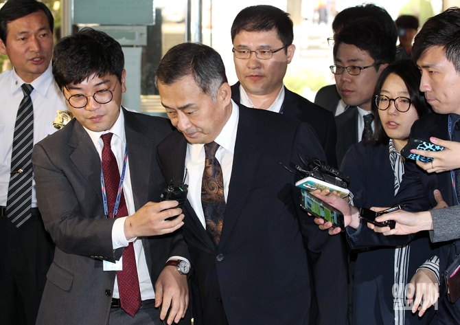 수백억원대 비자금을 조성하고 상습적으로 해외 원정도박을 한 혐의를 받고 있는 장세주 동국제강 회장이 6일 오전 영장실질심사를 받기 위해 서초동 서울중앙지방법원에 들어서고 있다.