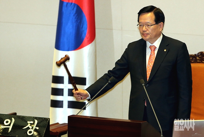 6일, 서울 여의도 국회 본회의장에서 열린 본회의에서 정의화 의장이 직권상정으로 박상옥 대법관 후보자 임명동의안을 상정시키고 있다.
