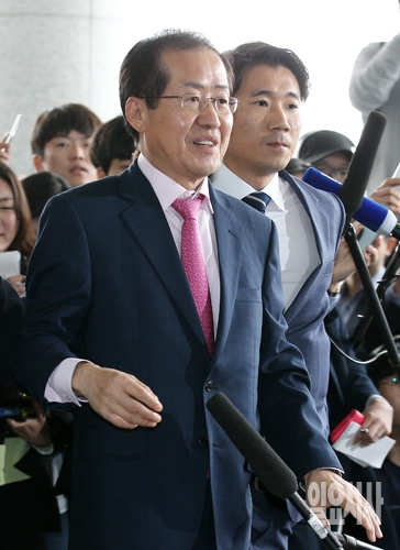 성완종리스트에 이름이 오른 홍준표 경남지사가 8일 오전 서초동 서울고등검찰청에 피의자 신분으로 출석하고 있다.