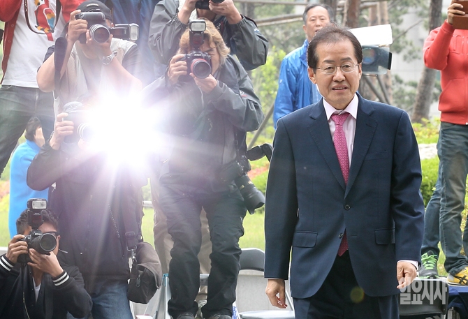 성완종리스트에 이름이 오른 홍준표 경남지사가 피의자 신분으로 조사를 받기 위해 8일 오전 서초동 서울고등검찰청에 출석하고 있다.
