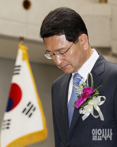 박상옥 신임 대법관이 8일 오후 서울 서초동 대법원에서 열린 대법관 취임식에서 순국선열에 대한  묵념을 하고 있다.