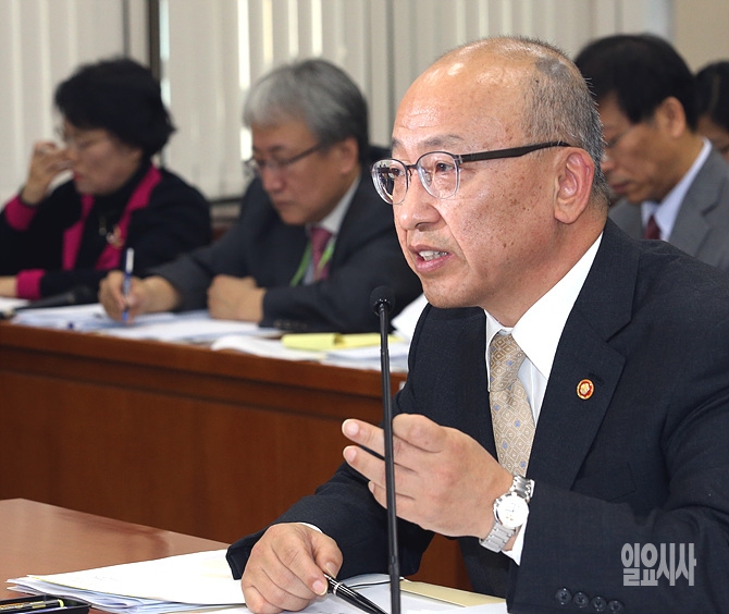 11일, 서울 여의도 국회 보건복지위원회 회의실에서 열린 보건복지위 전체회의에서 문형표 보건복지부장관이 의원들의 질의에 답변하고 있다.