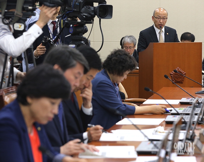 11일, 서울 여의도 국회 보건복지위원회 회의실에서 열린 보건복지위 전체회의 직전, 문형표 보건복지부장관이 업무보고하고 있다.
