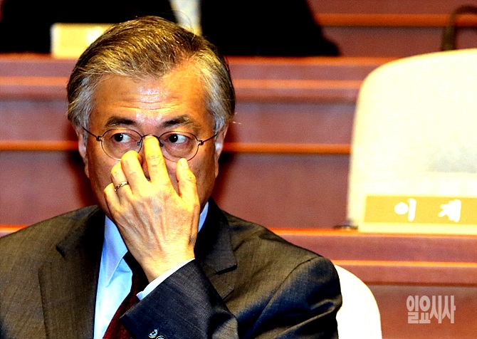 12일 서울 여의도 국회에서 열린 본회의에서 새정치민주연합 문재인 대표가 심각한 표정을 짓고 있다.